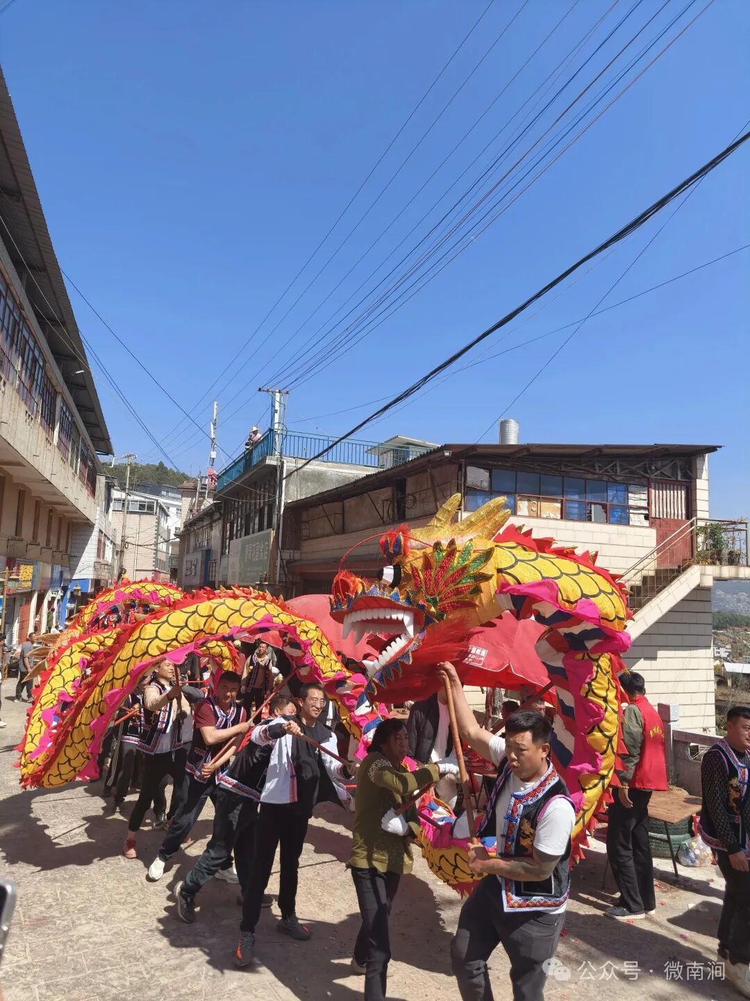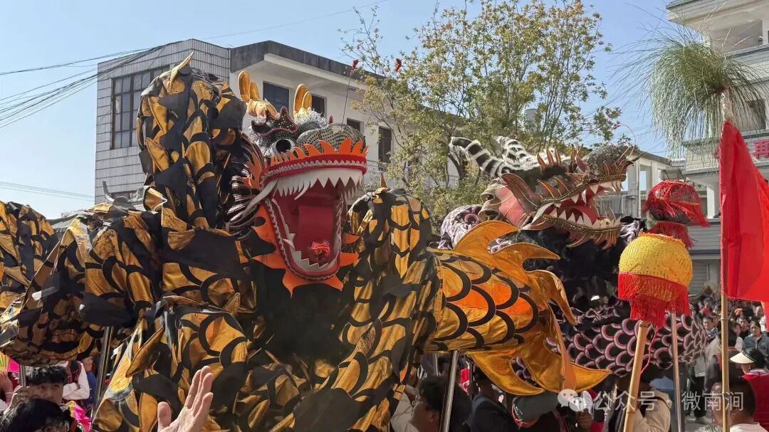 咚咚锵、咚咚锵、咚咚锵咚锵咚锵,伴随着欢快激昂的锣鼓声,龙灯会正式拉开序幕,来自各村的12支龙灯队伍,依次开始表演,只见色彩斑斓的一支支巨龙在街头巷尾腾空起舞,或盘旋飞舞,或俯冲翻滚,气势磅礴,尽显龙的精、气、神。舞龙者身着传统服饰,手持龙具,在鼓乐伴奏下,将龙的灵动与威严展现得淋漓尽致,引得现场掌声不断、喝彩连连。
