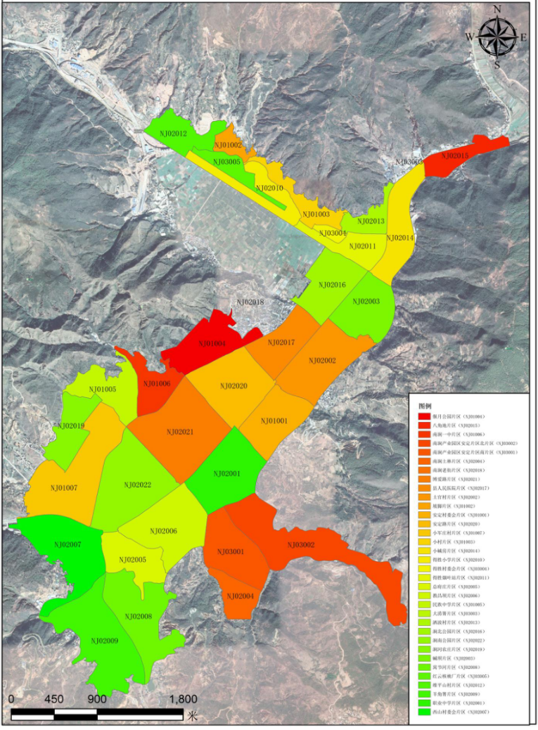 4.单块的声环境功能区面积,原则上不小于0.5km2,但考虑到南涧彝族自治县属于山区,中心城区面积较小,根据城市的地形特征把多个区域用地类型相同且相邻的单元连成片,充分利用道路、河流等自然地形作为区域边界,从而确定适宜的区域面积;