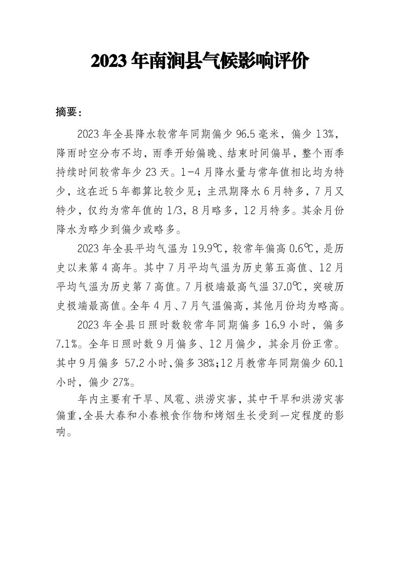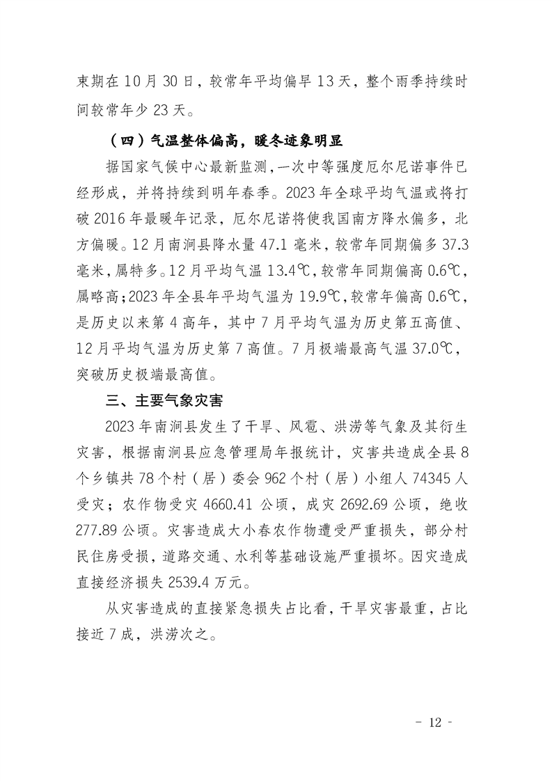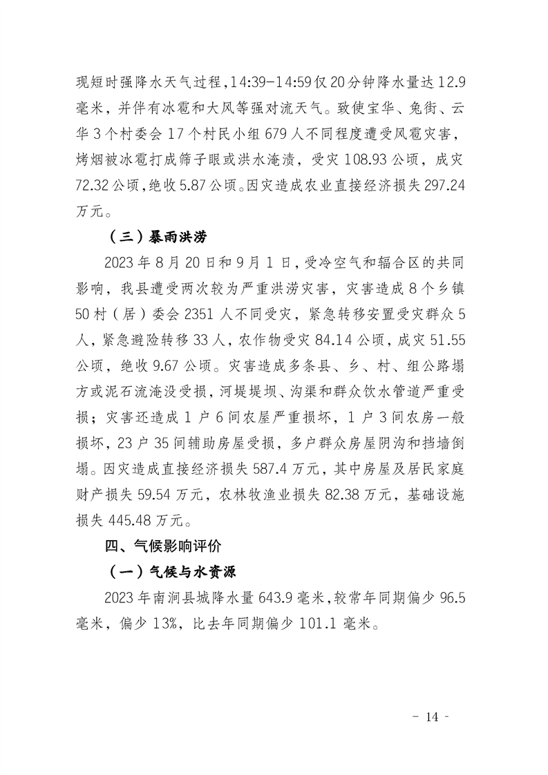 2023年南涧县气候影响评价